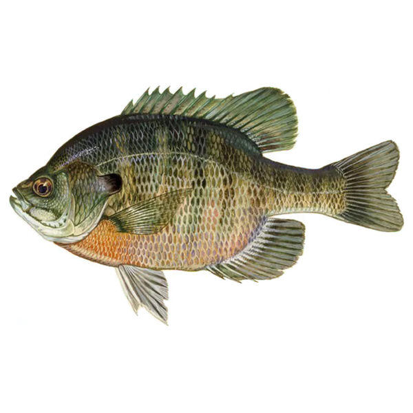 - Bluegill and redear sunfi sh — These popular and cooperative pan fish are found around the fish feeders and near vegetation or structure. Live worms or crickets fished a few feet under a small bobber are a sure bet. Doughballs and small pieces of cut hot dog also work well. Good lures include small jigs, beetle spins, and tiny spinners.